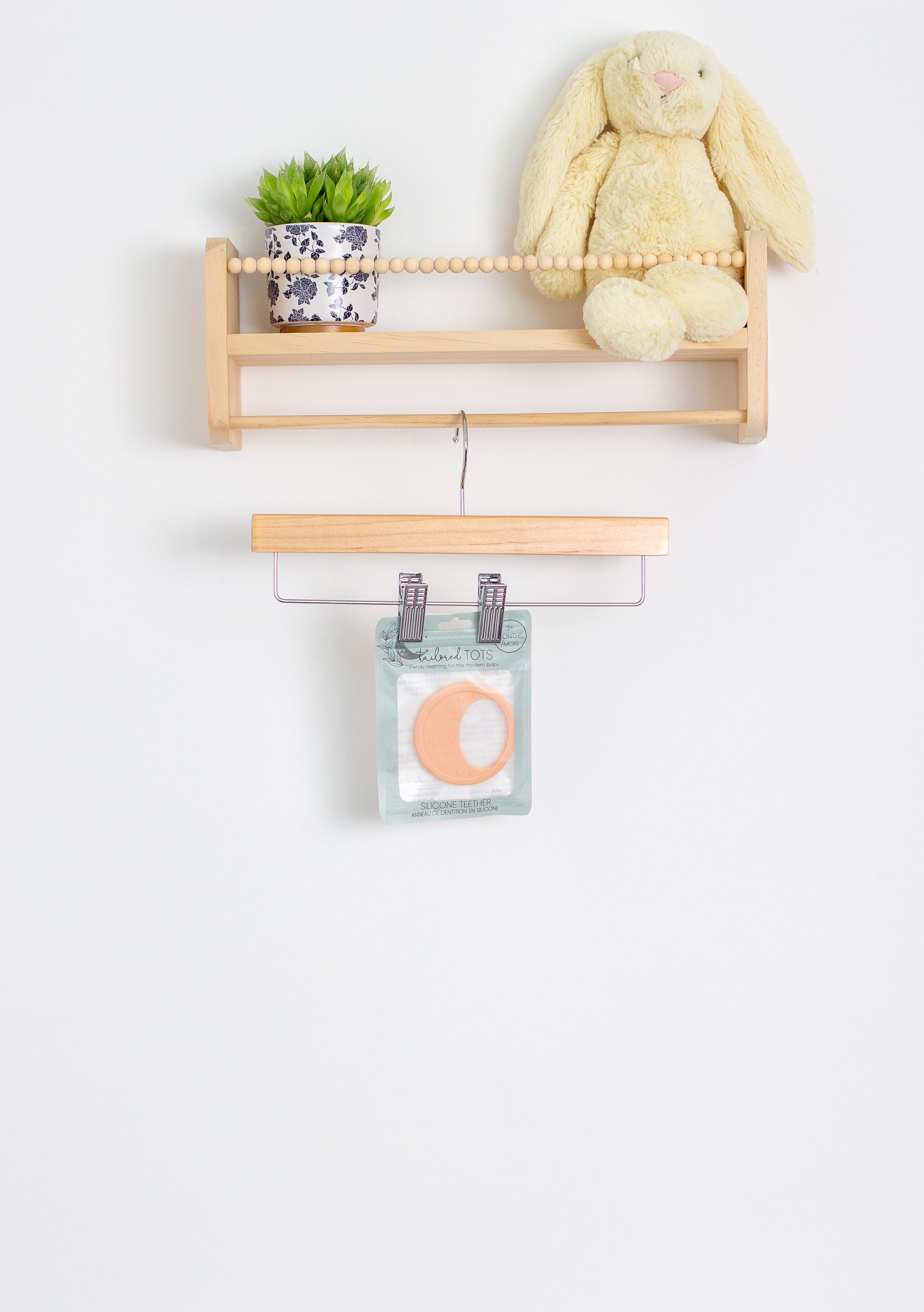 Our first exclusive silicone teether is a perfect size for little hands! Lightweight, pliable, and so easy to slide on to a pacifier clip. Little ridges throughout the teether aid to massage and soothe achy gums.